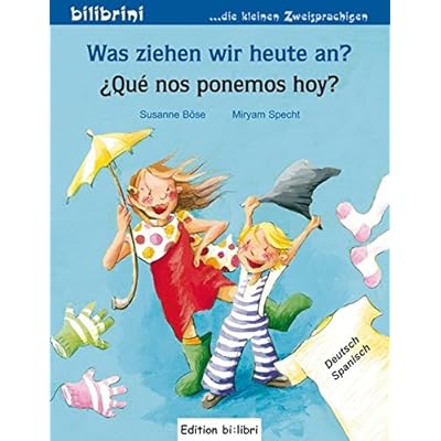 Zielgruppe: Kinder ab 2 Jahren Heute wird das Wetter wechselhaft. Was sollen Sarah und David bloß anziehen? Was ziehen wir heute an? liegt in der Reihe bilibrini – die kleinen Zweisprachigen vor und thematisiert, welche Kleidungsstücke eine Familie für einen typischen Apriltag braucht. Besonders anschaulich: Die Wort-Bild-Leiste auf jeder Seite greift wichtige Gegenstände erneut auf und fördert gezielt das Suchen, Finden und Benennen.Taschenbuch=16 Seiten. Verlag=Hueber, Verlag GmbH & Co. KG; Auflage: 1 (16. August 2011). Sprache=Deutsch, Spanisch. ISBN-10=3192695951. ISBN-13=978-3192695957. Vom Hersteller empfohlenes Alter=24 Monate - 4 Jahre. Größe und/oder Gewicht=15,7 x 0,2 x 20,1 cm. Durchschnittliche Kundenbewertung=4.4 von 5 Sternen 9 Kundenrezensionen. Amazon Bestseller-RangSpanischSprachen lernen=Nr. 148.367 in Bücher (Siehe Top 100 in Bücher) .zg_hrsr { margin: 0; padding: 0; list-style-type: none; } .zg_hrsr_item { margin: 0 0 0 10px; } .zg_hrsr_rank { display: inline-block; width: 80px; text-align: right; } Nr. 535 in Bücher > Lernen & Nachschlagen > Fremdsprachen & Sprachkurse > Sprachkurse nach Sprachen > Nr. 1859 in Bücher > Kinderbücher >.